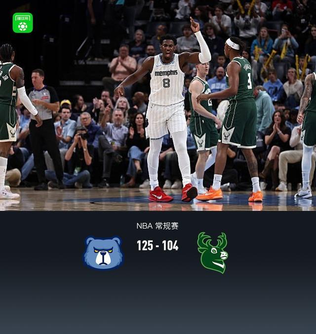 第四節(jié)灰熊考沃德拿下10分,雄鹿庫茲馬拿下4分,最終灰熊125-104戰(zhàn)勝雄鹿