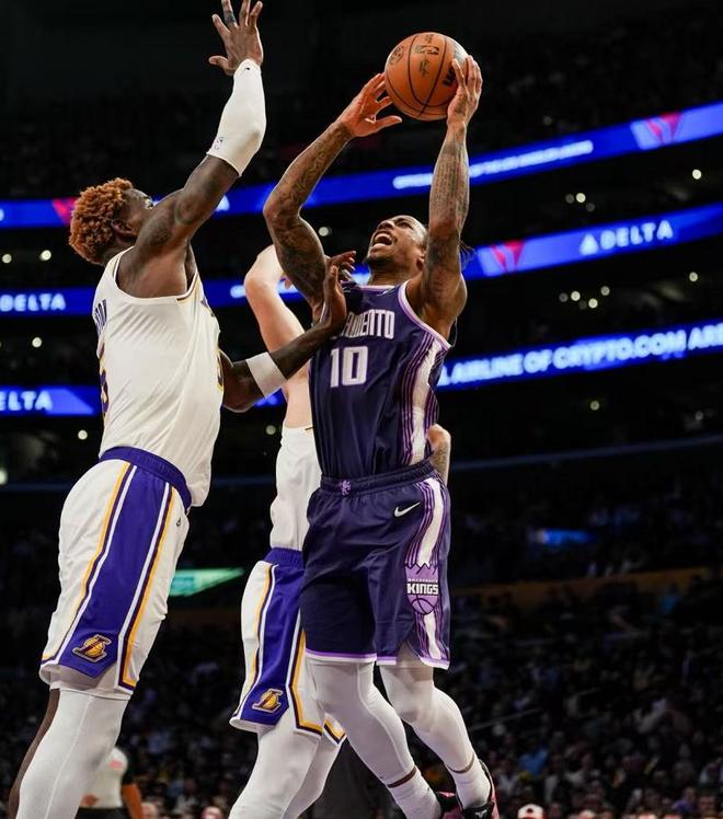 第二節(jié)開打范德彪上籃就是搶斷,但是進(jìn)攻端過來過于積極進(jìn)攻干擾球了,阿丘瓦半截籃追分,史密斯連得5分,蒙克三分兩連擊,范德彪三分也有比分38-32,施羅德突破到內(nèi)線對抗上籃被犯規(guī),兩罰一中不得不說雙方防守質(zhì)量都很差,就看誰的進(jìn)攻延續(xù)性好了,拉拉維亞錯位背打蒙克2+1打成,蒙克想回應(yīng)三分打鐵了,拉拉維亞利用詹姆斯擋開到內(nèi)線,被吹了進(jìn)攻犯規(guī)。施羅德加速突破內(nèi)線造成艾頓犯規(guī),這球沒給罰球國王底線開球,施羅德三分打鐵,斯瑪特獲得籃板給到艾頓后仰跳投偏出,阿丘瓦內(nèi)線擠開空間輕松放籃,東契奇外線三分開了,雷諾接到施羅德傳球到內(nèi)線拋中斯瑪特還賠上犯規(guī),加罰不中詹姆斯轉(zhuǎn)換折背扣46-37,德羅贊被東契奇血帽,湖人喊個暫停讓東契奇緩一下?;氐奖荣惏D分球失誤,埃利斯轉(zhuǎn)換上籃打成,東契奇過半場助攻艾頓吃餅。