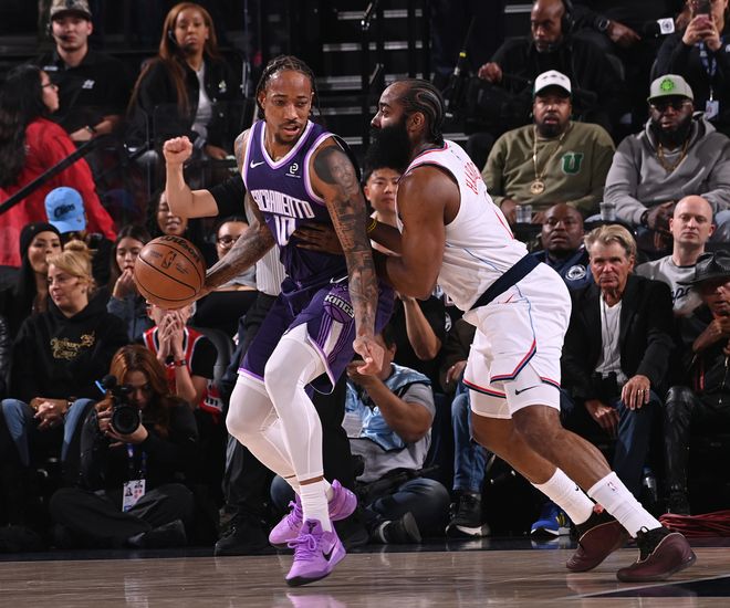 國王是聯(lián)盟防守效率最差的球隊,首節(jié)他們就展現(xiàn)了物種的多樣性各種漏人、失誤,哈登在首節(jié)7中4拿到12分1助攻1搶斷,小卡也拿到8分,這兩人合計20分而國王全隊才20分。威少、德羅贊、施羅德、基根穆雷都是連連打鐵,這支國王還有多人被擺上貨架陷入輿論漩渦感覺都心不在焉。