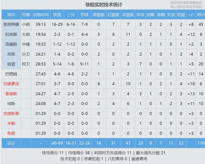哈登第四節(jié)沒上場,最終快船118-101大勝爵士,快船6連勝。倫納德末節(jié)14中8獨(dú)得20分。全場比賽,小卡打了39分鐘,投籃29中16,三分16中6,罰球9中7,狂轟45分7板3助2斷2帽!哈登20分3板7助;李凱爾22分8板2斷2帽。