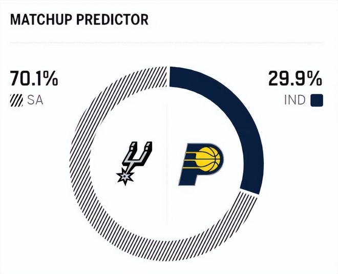 賽前,美媒ESPN對本場比賽進(jìn)行了勝率預(yù)測,馬刺隊(duì)勝率高達(dá)70.1%,步行者勝率則僅有29.9% ,差距非常明顯。