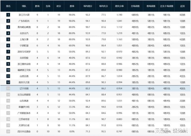 CBA積分榜