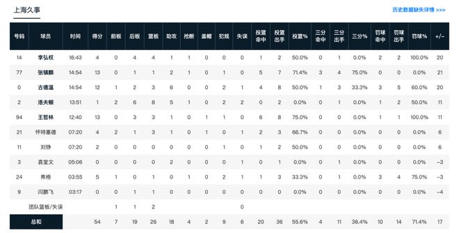 上海久事男籃半場數(shù)據(jù)統(tǒng)計(jì)