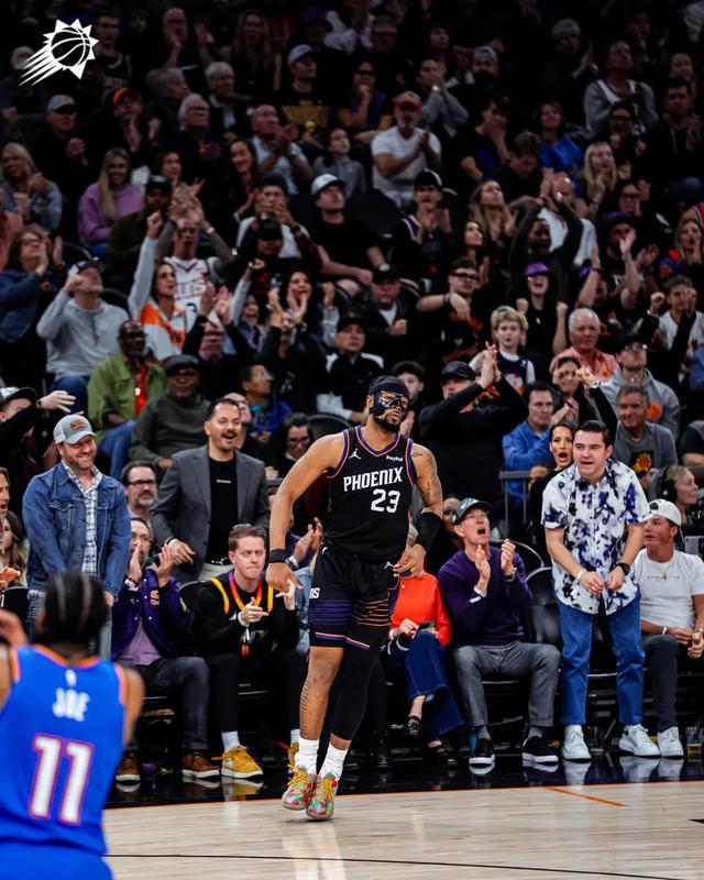 雷霆上半場(chǎng)一度領(lǐng)先18分,但在第二節(jié)末尾被太陽(yáng)打出一波進(jìn)攻高潮,此后比賽的節(jié)奏就一直太陽(yáng)的手里。布克雖然投籃命中不多,但好在能持續(xù)走上罰球線,同時(shí)也送出了9次助攻。最后一攻布克選擇相信自己的手感,在這之前他一直都在相信隊(duì)友,其中獲益最大的就是打出生涯之夜的喬丹-古德溫。