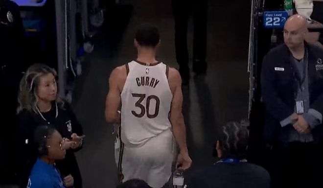 庫里在首節(jié)中段一度返回更衣室。