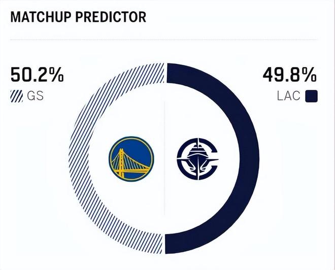 賽前,美媒ESPN對本場比賽進(jìn)行了勝率預(yù)測,快船隊(duì)勝率為49.8%,勇士勝率則為50.2% ,略占一點(diǎn)點(diǎn)優(yōu)勢。