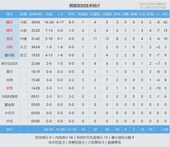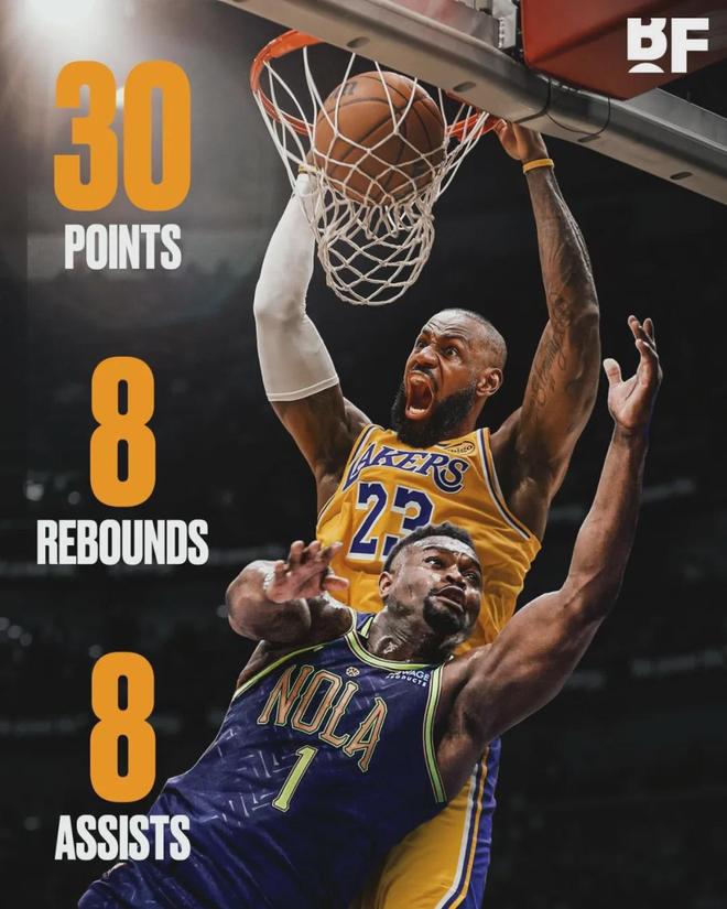 詹姆斯30分8板8助2斷、東契奇30分2板10助2斷,兩人合砍60分10籃板18助攻。鵜鶘慘遭8連敗,墨菲42分5板3助、錫安15分4板5助3失誤、奎因10分13板8助2斷4失誤。墨菲打破生涯得分紀(jì)錄,他也是鵜鶘交易價(jià)值最高的球員。