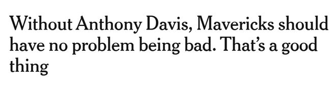 獨(dú)行俠可以在今夏重啟戴維斯的交易談判。而在接下來的四個月里,球隊(duì)最該做的事,就是擺爛輸球——缺少這位年薪5400萬美元的核心球員,做到這一點(diǎn)并非難事。
