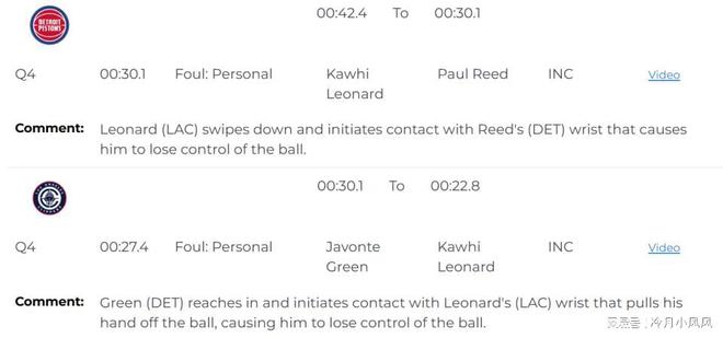 比賽還剩下30秒時,裁判報告指出,倫納德在搶斷時打到了保羅里德的手腕,應(yīng)該吹罰倫納德犯規(guī)。比賽還剩下27秒時,賈文特格林在防守時打到了倫納德手腕,導(dǎo)致后者失去對球權(quán)的控制,應(yīng)該吹罰格林犯規(guī)。