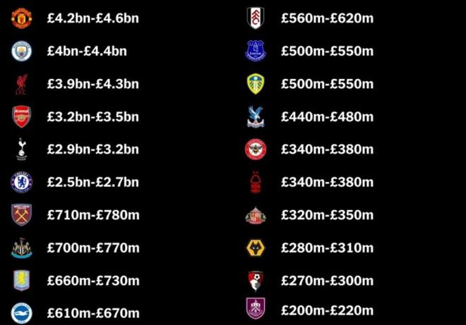 12月27日,TA發(fā)布了英超各支球隊(duì)的估值情況,這份榜單由TA查看了英超各家俱樂(lè)部的財(cái)務(wù)情況,并且綜合了相關(guān)數(shù)據(jù),其中包括Football Benchmark、福布斯、Kinnaird和Sportico等相關(guān)媒體的數(shù)據(jù),給出的這份榜單,還是具備一定的權(quán)威性的。在這份榜單當(dāng)中,曼聯(lián)以46億英鎊的估值領(lǐng)跑英超,排名第2的則是曼城的44億英鎊,緊隨其后的是43億的利物浦,這也是所有超過(guò)40億英鎊的英超俱樂(lè)部。
