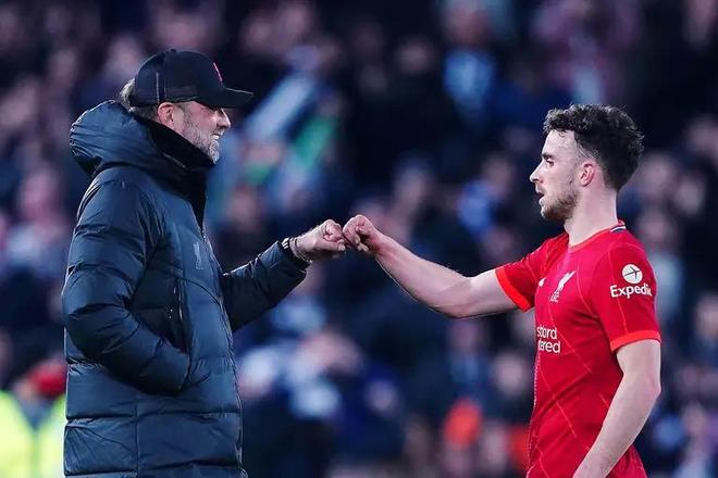 這種影響貫穿了我執(zhí)教俱樂(lè)部的整個(gè)時(shí)期——甚至在我離開之后也是如此。在最重要的時(shí)刻,在我們最需要他的時(shí)候,他一次又一次地挺身而出。今年四月,他對(duì)陣埃弗頓打進(jìn)制勝球時(shí),我是在家里的客廳里慶祝的,但那種感覺(jué),就像我站在KOP看臺(tái)上一樣。那是一個(gè)決定冠軍歸屬的瞬間。如今,它已成為一個(gè)永恒的瞬間,與俱樂(lè)部悠久歷史中那些最重要的時(shí)刻并列。我一直說(shuō),作為一名進(jìn)攻球員,你同樣必須參與防守——而迪奧戈在這方面做得無(wú)比出色。他會(huì)為每一個(gè)球而拼盡全力,瘋狂地逼搶。然后在下一秒,他又會(huì)給你一個(gè)微笑,一次握手,或者在走廊里開一個(gè)小小的玩笑。