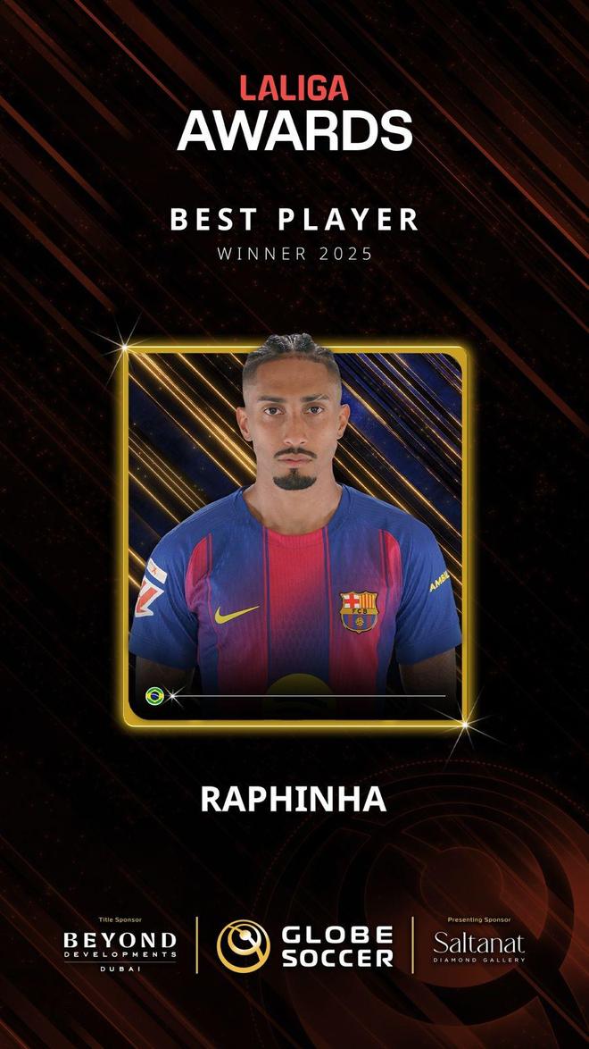 根據(jù)公布的結(jié)果,拉菲尼亞被評(píng)為2025年度環(huán)球足球獎(jiǎng)西甲最佳球員,不過球員本人并未出席頒獎(jiǎng)典禮,隨后,他通過錄制視頻的方式發(fā)表了獲獎(jiǎng)感言。