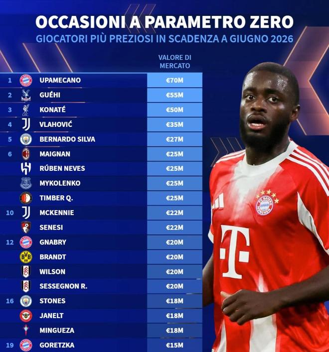 1. 于帕梅卡諾(拜仁慕尼黑) 7000萬歐元