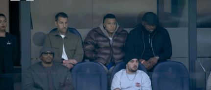 鏡頭給到受傷無(wú)法上場(chǎng)的姆巴佩