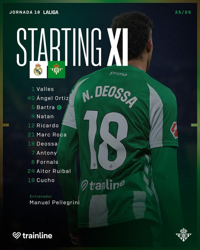北京時間1月4日23:15,西甲第18輪,皇馬主場對陣貝蒂斯。賽前首發(fā)公布。